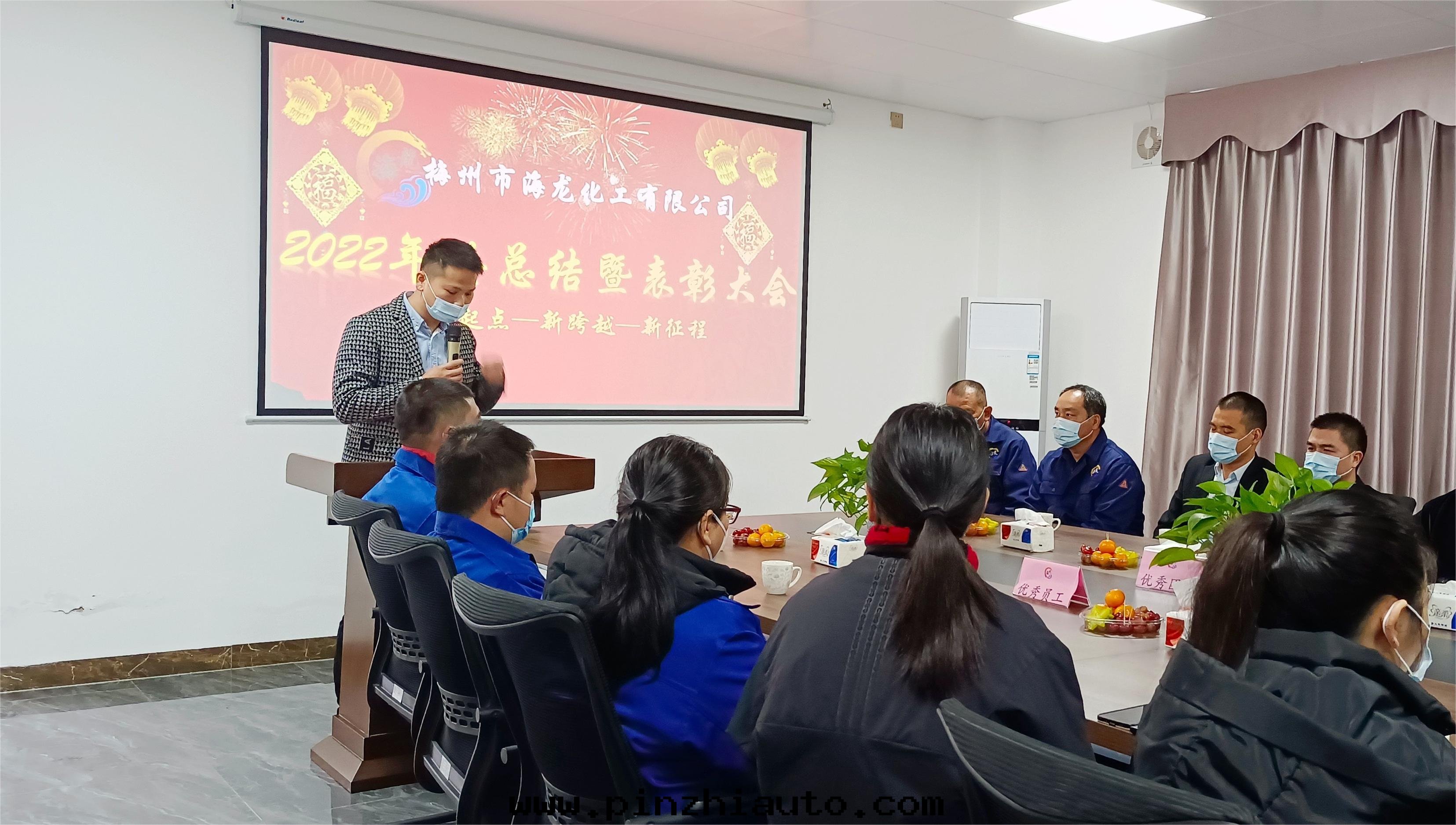 砥砺前(qián)行共(gòng)奮進(jìn),奮发有为開(kāi)新(xīn)篇(piān)。为總(zǒng)結过(guò)去(qù),展望未来(lái),鼓勵先(xiān)進(jìn),表(biǎo)彰优秀,2023年(nián)1月9日(rì)下(xià)午,梅州市(shì)海(hǎi)龍化(huà)工有限公(gōng)司2022年(nián)終(zhōng)工作(zuò)總(zǒng)結暨表(biǎo)彰大(dà)会在(zài)總(zǒng)部(bù)办公(gōng)樓会議室(shì)隆重(zhòng)举行。