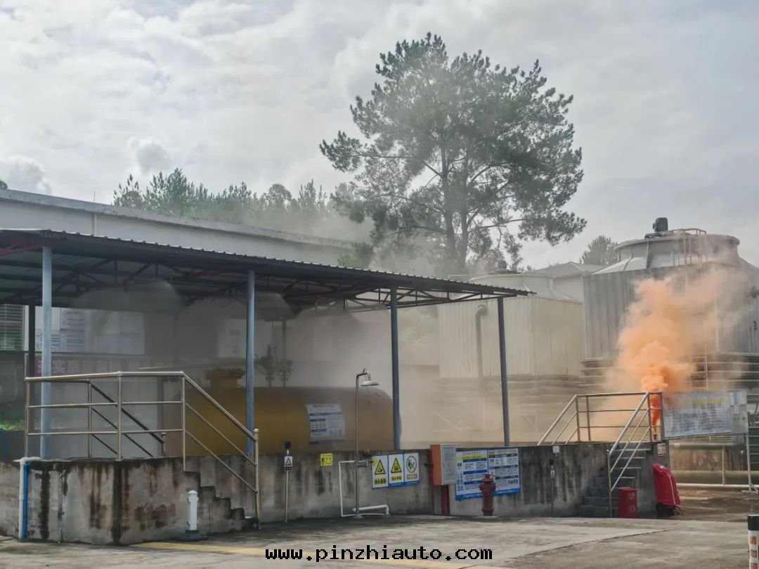 本次(cì)演練模拟化(huà)工厂液氨儲罐(guàn)出(chū)料管(guǎn)道(dào)破裂,導致(zhì)大(dà)量(liàng)液氨发生(shēng)洩漏並(bìng)引发火(huǒ)災。上(shàng)午9时(shí)30分(fēn),中(zhōng)控室(shì)操作(zuò)员在(zài)值班(bān)室(shì)突然听(tīng)到(dào)气(qì)體(tǐ)報警器发生(shēng)報警聲,立即查看(kàn)視频监控,发現(xiàn)液氨儲罐(guàn)出(chū)料管(guǎn)道(dào)冒出(chū)大(dà)量(liàng)白(bái)煙,且(qiě)觸发連(lián)锁噴淋裝(zhuāng)置,意(yì)識到(dào)液氨发生(shēng)洩漏。情(qíng)況非(fēi)常緊急,該操作(zuò)员立即上(shàng)報公(gōng)司應(yìng)急總(zǒng)指挥。